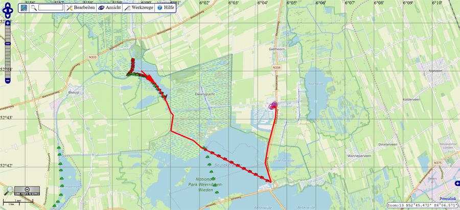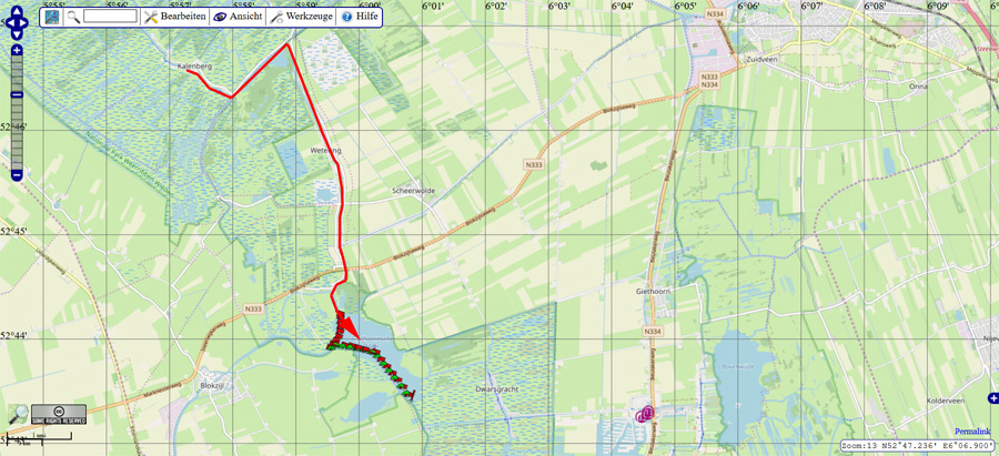 Abfahrt an Mr. H. P. Linthorst Homannsluis: 10:50 Uhr Fahrtzeit: 1 Std. 15 Minuten Strecke: 8,2 KM Geschwindigkeit: 6,5 km/h Ankunft in Kalenberg: 12:05 Uhr Wetter: bedeckt, ca. 12 Grad, Wind 2 Bft 1 Schleuse, 2 bewegliche Brücken, 2,00 Euro Brückengeld in Kalenberg Brückenpause (geschlossen bis 13:00 Uhr) + Hunderunde Route in Karte: ![]() In der Kalenberger Gracht Ein sehr schöner Fahrweg, max. Geschwindigkeit: 6 km/h 5 Minuten von der Brücke Kalenberg haben wir einen schönen Spazierweg für die Brückenpause gefunden. Fahrtzeit: 3 Std. Strecke: 17,6 KM Geschwindigkeit: 5,9 km/h Ankunft in Giethoorn: 16:00 Uhr Wetter: bedeckt, ca. 13 Grad, Wind 1 Bft 2 bewegliche Brücken, kein Brückengeld Liegegeld im Hafen: 17,40 Euro Route in Karte: ![]() ![]() Passantenhafen De Zuiderkluft in Giethoorn Der Hafen war (sicherlich jahreszeitbedingt) sehr ruhig und leer, wir hatten eines der drei Hafenbecken für uns alleine. Da konnten die Hunde gut auch ohne Leine vor dem Boot liegen. Direkt hinter dem Hafen ist ein wenig freie Landschaft, wo man die Hunde laufen lassen kann. Jetzt kommt noch ein dickes Lob an unseren Vermieter: Am Abend (kurz vor 20:00 Ihr) haben wir einen Anruf von Joost van Maasakker von Holiday Boatin erhalten. Er fragte, ob alles in Ordnung sei. Wir bemängelten, dass die Heizung hinten im Boot nicht zuverlässig funktioniert. Wir sagten, dass er sich am folgenden Montag (dann bringen wir Mutti zur Bahn) darum kümmern könne. Er wollte sich aber nicht davon abbringen lassen, sofort zu kommen. Um ca. 20:40 Uhr war er dann bei uns und hat beide Heizungen komplett zerlegt und gesäubert. Gegen 22:30 Uhr hatten wir es schön warm und er ist zurück nach Sneek gefahren. Dies war definitiv mehr Service, als wir erwarten würden. Vielen Dank an Joost. |