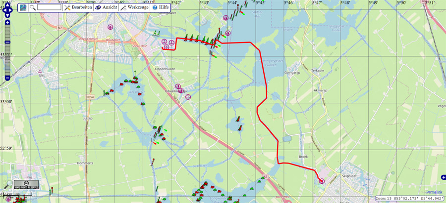 Hund an Bord27.04.2015 Abfahrt in Joure: 8:00 Uhr Fahrtzeit: 1 Std. 11 Minuten Strecke: 11,1 KM Geschwindigkeit: 9,3 km/h Ankunft im Heimathafen in Sneek: 9:11 Uhr Wetter: bewölkt, ca. 12 - 14 Grad, Wind 2-4 Bft keine Brücken Route in Karte: ![]() Im Hafen Für Mutti ist der Urlaub heute vorbei. Wir haben sie mit dem Auto nach Deventer gebracht (zum Zug nach Hamburg). Dann haben wir noch einen möglichen Geschäftspartner am Ijsselmeer besucht und sind abend im Hafen geblieben. Eine Beschreibung zum Thema "Sneek mit Hund" findest Du am 06.09.2012 (klick auf das Datum). |