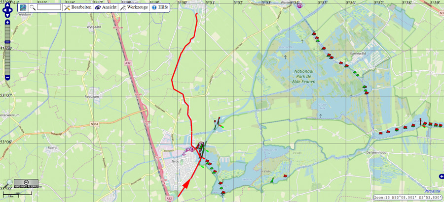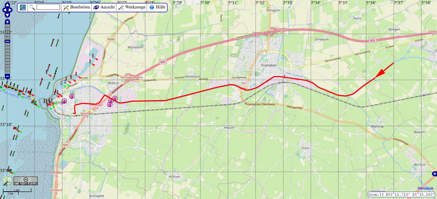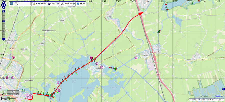 Hund an Bord28.04.2015 Abfahrt in Sneek: 10:50 Uhr Fahrtzeit: 2 Std. Strecke: 20,9 KM Geschwindigkeit: 10,4 km/h Ankunft in Wergea: 12:50 Uhr Wetter: bedeckt, leichter Regen, gegen Mittag aufklarend, ca. 11 - 13 Grad, Wind 2-4 Bft 2 bewegliche Brücken, kein Brückengeld Route in Karte: ![]() ![]() Pause - Hunderunde Am Liegeplatz Im Ort Für Hunde ist Wergea nicht unbedingt ein "Highlight", für Menschen ein schöner, beschaulicher Ort. Update 2021: Wir waren inzwischen einige Male in Wergea und haben das Umeld erkundet. Man kann hier recht gut mit Hunden sein. Abfahrt in Wergea: 13:50 Uhr Fahrtzeit: 3 Std. 50 Min. Strecke: 36,4 KM Geschwindigkeit: 9,6 km/h Ankunft in Harlingen: 17:40 Uhr Wetter: leicht bewölkt, teilweise sonnig, ca. 15 - 16 Grad, Wind 3-4 Bft, in Böen 6 Bft 3 bewegliche Brücken, kein Brückengeld Route in Karte: ![]() ![]() Während der Fahrt macht die Crew Pause. Auf dem Van Harinxmakanaal Van Harinxmakanaal bei Franeker An der Industriebrug in Harlingen Die Harlingertrekvaart Rückblick in die Harlingertrekvaart, warten vor der Oosterbrug Die Oosterbrug Liegeplatz în der Zuid-Oost-Gracht Um nach Harlingen zu kommen, benötigt man ein Mobiltelefon. Die Brücken sind nicht besetzt, man muss die Brückenbedienung telefonisch anfordern. Die Oosterbrug wird (wie viele weiteren historischen Brücken in der Innenstadt) noch "von Hand" bedient (hochgekurbelt). Bilder aus Harlingen gibt es morgen. |