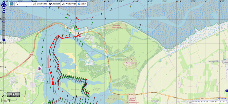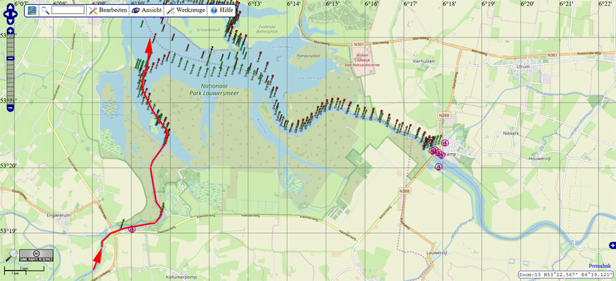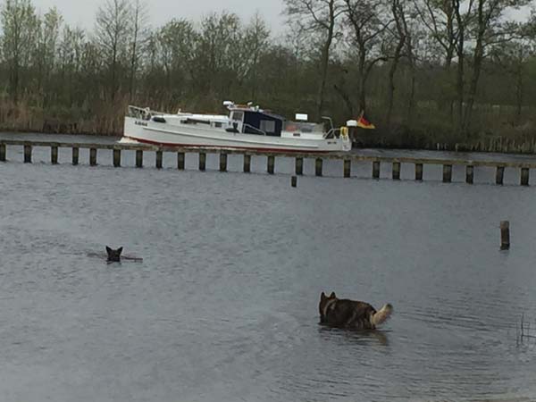 Vormittags noch zwei ausgiebige Spaziergänge. Es hat ja schließlich einen Grund, warum wir immer wieder nach Zwaagwesteinde fahren. (Eigentlich zwei Gründe: die Hunde) Zurück zum Boot nach der "Morgenrunde" Am späten Vormittag fing es dann an, sich zu bewölken. An der Badestelle (eigentlich für Hunde verboten, aber so früh im Jahr fragt niemand danach) Der pure Übermut in beiden Hunden Auch andere Hundehalter sind hier gern unterwegs freier Liegeplatz bei Zwaagwesteinde langsam zurück Abfahrt in Zwaagwesteinde: 12:10 Uhr Fahrtzeit: 2 Std. 55 Min. Strecke: 26,3 KM Geschwindigkeit: 9,0 km/h Ankunft in Lauwersog (Jachthaven Noordergat): 15:05 Uhr Wetter: vormittags sonnig, ab mittags bedeckt, nachmittags Regen, ca. 14 - 18 Grad, Wind 2-5 Bft 1 bewegliche Brücke, 1 Schleuse, kein Brückengeld 4 feste Brücken mit Durchfahrthöhe 2,90 bis 3 Meter Route in Karte: ![]() ![]() ![]() Auf dem Lauwersmeer Am Nordseedeich. Hinten ein Sperrwerk, mit dem Friesland sein überschüssiges Wasser in die Nordsee pumpt. Im Sportboothafen Lauwersog (Jachthaven Noordergat) Hinten der Seedeich Spazieren gehen am Hafen (auf dem Weg zum Deich) Im Hafen Der (Binnen-) Hafen (von Seedeich aus) Zum Seehafen (Fischerei- und Fährhafen) Die Zufahrt von der Nordsee Lauwersog
