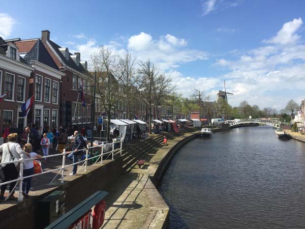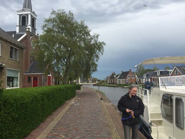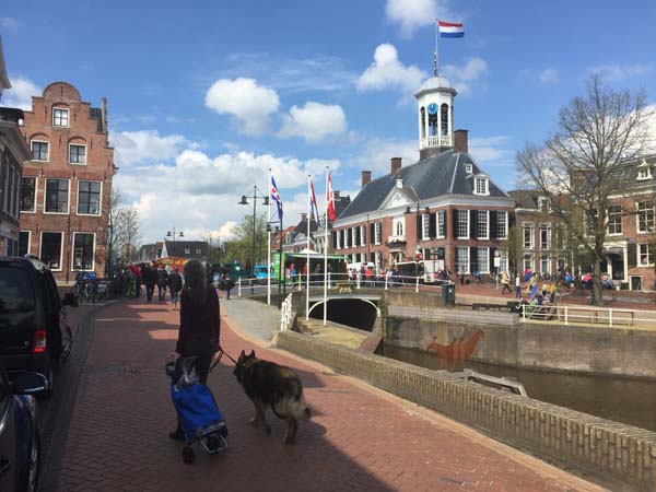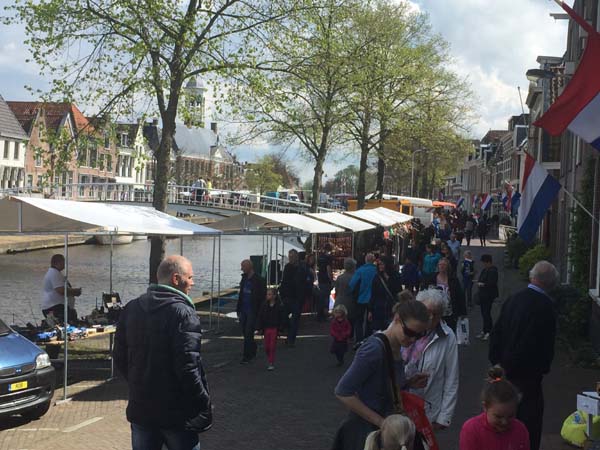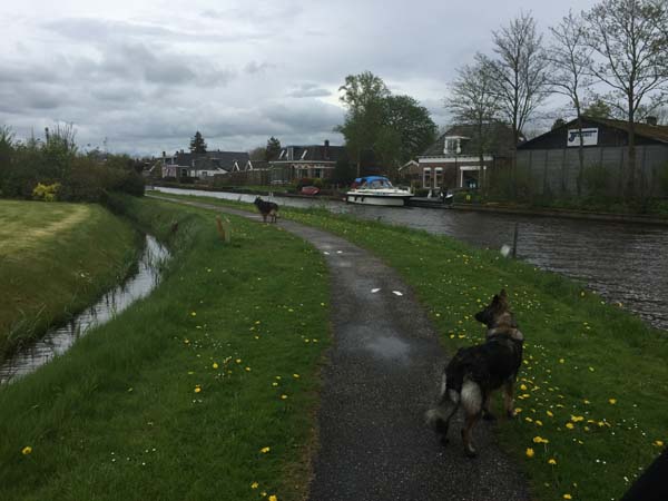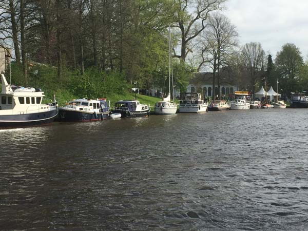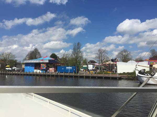 Hund an Bord05.05.2015 Am 04.05.2015 war die ganze Stadt auf Halbmast beflaggt. Von 19:00 Uhr bis 19:55 Uhr läuteten die Kirchenglocken. Dann 5 Minuten "Innehalten" - kein Autoverkehr, Ruhe in der Stadt. Gedenken an die Toten des letzten Weltkrieges. Am 05.05.2015 waren dann alle Häuser auf Vollmast beflaggt Feiertag - Freudentag Es wird das Kriegsende in den Niederlanden gefeiert. In der Stadt sind Buden aufgebaut, am Stadtrand ein kleiner Kirmes. Es ist arbeitsfrei - und abends ist Party. Kirmes am Stadtrand Abfahrt in Dokkum: 13:05 Uhr Fahrtzeit: 1 Std. 40 Min. Strecke: 9,1 KM Geschwindigkeit: 5,4 km/h Ankunft in Burdaard: 14:45 Uhr Wetter: sehr wechselhaft, teilweise Sprühregen, ca. 15 - 20 Grad, Wind 4-6 Bft - in Böen 8 Bft 5 bewegliche Brücken, 7,50 Euro Brückengeld Sehr lange Wartezeit an der Altenbreege in Dokkum (4 Brücken werden dort durch eine Person bedient) In Burdard werden beide Brücken ebenfalls von nur einer Person bedient, d. h. zwischen den beiden Brücken reicht eine Fahrtgeschwindigkeit von 3-4 km/h, um pünktlich an der zweiten Brücke zu sein. Route in Karte: ![]() Unter nachfolgendem Link gibt es ein kleines Video von der Durchfahrt durch die Altenbreege in Dokkum. Das Ganze ein bischen wackelig, Susanne musste gleichzeitig - sich an der Reling fest halten - das Brückengeld bezahlen - das Handy zu Filmen in einer Hand gehalten. Video, Format MP4, Größe 23,5 MB, Länge: 1:10 Minuten Anleger in Burdaard. Hunderunde bei Burdaard Abfahrt in Burdard: 15:48 Uhr Fahrtzeit: 1 Std. 46 Min. Strecke: 14,2 KM Geschwindigkeit: 8,0 km/h Ankunft in Leeuwarden: 17:36 Uhr Wetter: sehr wechselhaft, teilweise Sprühregen, ca. 16 - 20 Grad, Wind 5-8 Bft 2 bewegliche Brücken, 7,00 Euro Brückengeld Windstärken über 5 Bft (auf den großen Seen schon über 4 Bft) mag die Happy Time überhaupt nicht. Wir hatten alle Hände voll zu tun, alles an Deck und unter Deck zu sichern (ein Glas ging trotzdem zu Bruch) und das Boot in der Spur zu halten. Deshalb gibt es keine Bilder von der Fahrt über die Dokkumer Ie. Route in Karte: ![]() ![]() In Leeuwarden. Fast alle Liegeplätze sind belegt. Wir haben noch 13 Meter Platz (für das 11,5-Meter-Boot) auf der stadtabgewandten Seite gefunden. Auf der Stadtseite der Gracht waren überall Buden und Bühnen aufgebaut. Wir sind mit den Hunden nicht in die Stadt gegangen. Zu laut - zu viele Menschen! Um 23:00 Uhr war dann Ruhe. |