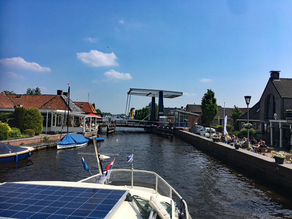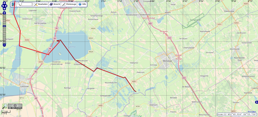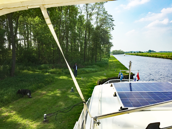 Von Sneek über Princess-Magrietkanaal, Follegatsleat, Tjeukemeer, Jonkers- of Helomavaart zur Driewegsluis. 38 KM - 5 Std. Fahrt (inkl. 1/2 Std. Hunderunde am Tjeukemeer). 4 bewegliche Brücken, 2,- € Brückengeld in Echtenerbrug, 14,40 € Liegegeld an der Driewegsluis. ![]() ![]() ![]() Auf dem Princess-Magrietkanaal ![]() Alles, wie das gehört.