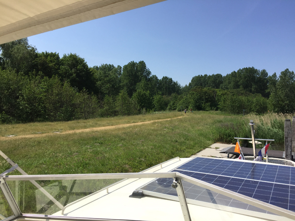 Hund an BordTour Frühjahr 201828.05.18 Von Kollum über Sylster Ryd, Dokkumer Dijp, Dokkumer Nieuwe Zijlen ins Lauwersmeer (Provinz Groningen). 19 KM, 2 Std. 20 Min. 1 Schleuse, 2 bewegliche Brücken, kein Brückengeld. Der Schleusenmeister an der Willem Lorésluis (Dokkumer Nieuwe Zijlen) hatte nicht seinen besten Tag. Die Brücke am Ortsausgang Kollum (über die N358 - wird von der Schleuse fernbedient) hst er relativ schnell geöffnet, sich dann aber zwei Minuten Zeit gelassen, bis er uns grünes Licht gegeben hat. Die zweite Brücke, direkt in der Schleuse, hat er überhaupt nicht für uns aufgemacht. Wir können ja im Schleusenbecken das Boot ganz flach machen. Dass das Stress für die Crew ist, war ihm egal. Also Verdeck im Becken gelegt und ohne Brückenöffnung aus der Schleuse ausgefahren. ![]() ![]() Auf dem Dokkumer Dijp ![]() ![]() Im Hintergrund rechts die Brücke an der Willem Lorésluis. ![]() Der Jachthaven Lunegat auf dem Dokkumer Dijp ![]() Auf dem Lauwersmeer. Im Hintergrund das Sperrwerk zur Nordsee. ![]() Am Liegeplatz beim Park Syderoogh Ballastplaatbos (4 Bilder - alle 4 Richtungen) ![]() ![]() ![]() Auf zur Hunderunde !