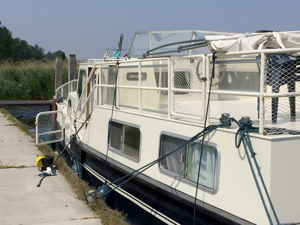 Hund an BordTour Frühjahr 201829.05.18 Hundetag! Es ist zu schön hier. Wir bleiben am Liegeplatz beim Park Syderoogh Ballastplaatbos. ![]() Zweimal am Tag werden Menschen gebracht und/oder wieder abgeholt. ![]() Blick übers Lauwersmeer. Im Hintergund der Ort Lauwersoog (Jachthaven, Fischereihafen, Nordseeschleuse) ![]() Das Boot ist flach. Auf dem Lauwersmeer bzw. so nach an der Nordsee geht immer ein Wind. Das Verdeck haben wir deshalb schon gestern abend gelegt, weil es im Wind Musik gemacht hat. ![]() Auf ins Hundeparadies. |