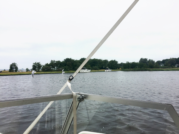 ![]() ![]() ![]() Tagsüber waren wir dann länger mit dem Auto unterwegs. Wir haben einen möglichen neuen Lieferanten für unsere Arbeit besucht. Am Abend dann: Von Sneek über Houkesleat, Princess-Magrietkanaal, Jeltesloot, Heegermeer und Fluessen nach Langehoekspolle (Insel auf Fluessen) 19,5 KM, 2 Std. keine Brücken ![]() ![]() Hafenausfahrt um 17:00 Uhr ![]() Auf dem Princess-Magrietkanaal Ruhiges Fahrwasser . . . ![]() . . . die Crew ist entspannt. ![]() Eine Insel im Jeltesloot. Hier kann man festmachen. Wir haben in 2009 einmal hier übernachtet, als es auf dem Heegermeer und auf Fluessen zu stürmisch war. Der Nachteil (mit Hunden): Man hat die ganze Insel in knapp 5 Minuten umrundet. Nicht gerade das, was ein Hund sich als Abendunterhaltung wünscht. ![]() Auf Fluessen, nach hinten raus fotografiert.. So gut wie kein Bootsverkehr - die Möwen ziehen hinter uns her. ![]() Anfahrt auf Lagehoekspolle ![]() Rechts hinter den beiden weißen Booten werden wir festmachen. ![]() Am Liegeplatz ![]() ![]() Über Langehoekspolle haben wir auf vergangenen Touren mehrfach geschrieben. Wir fahren immer wieder gern hierher. Ruhiges Liegen, eine Runde um die Insel dauert 'ne halbe Stunde Entspannt mit den Hunden. Warnhinweis: Langehoekspolle ist sehr beliebt. Am Wochenende oder in der Ferienzeit würde ich es nicht versuchen, Abends um 19 Uhr hier einen Liegeplatz zu finden. Alles voll! |