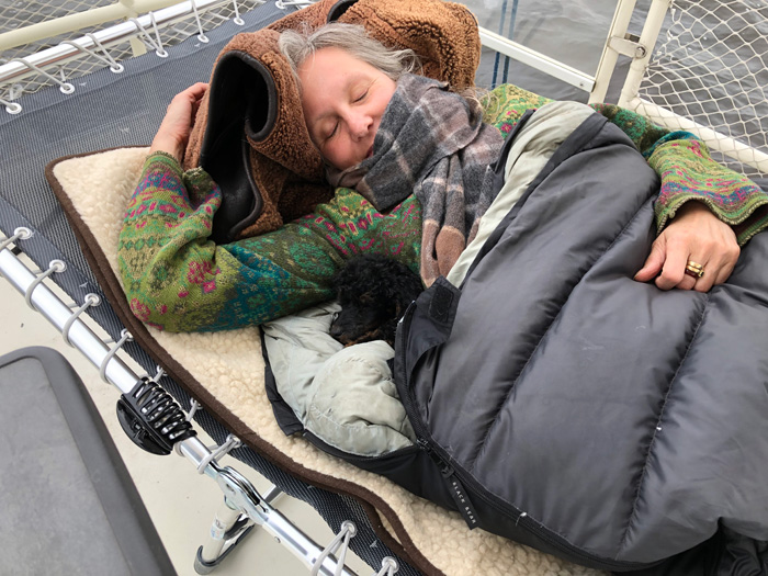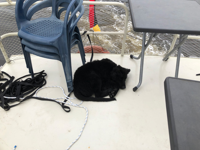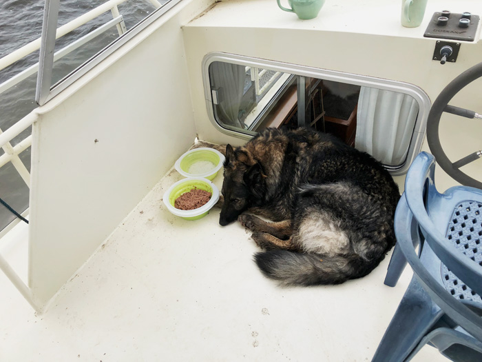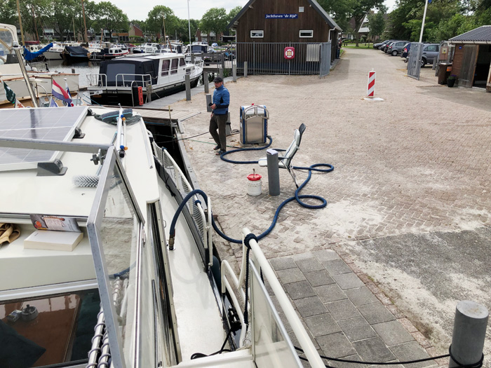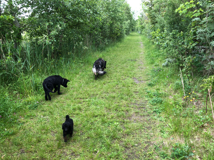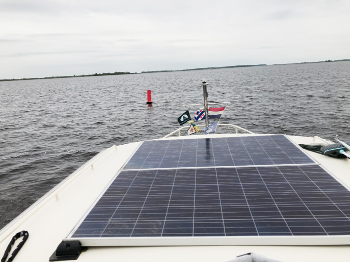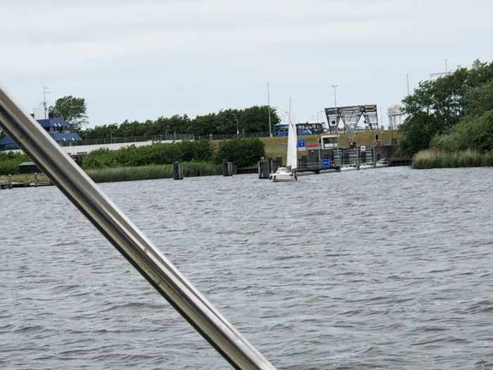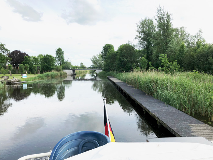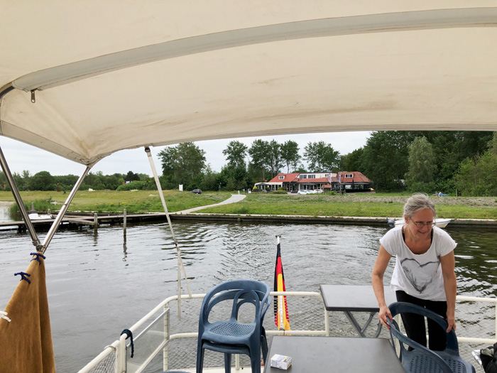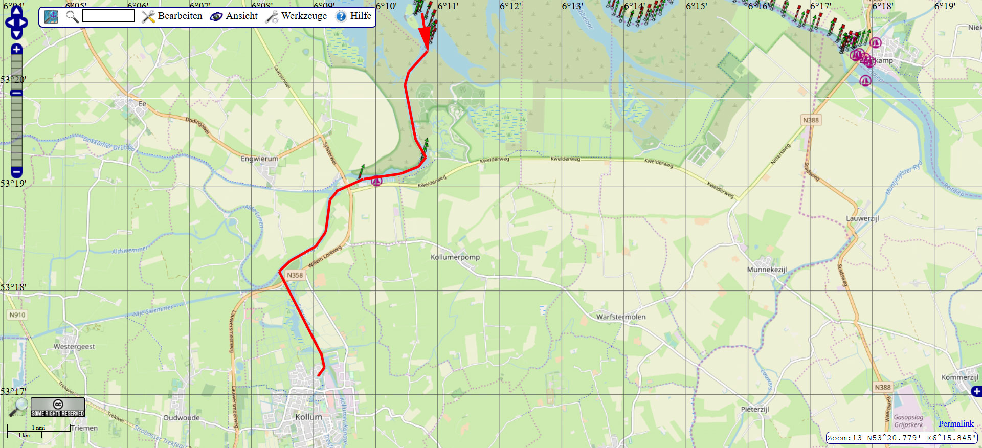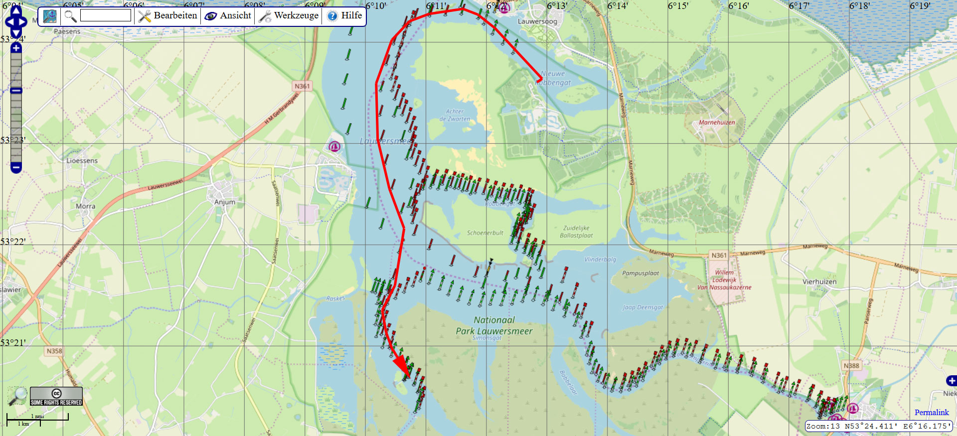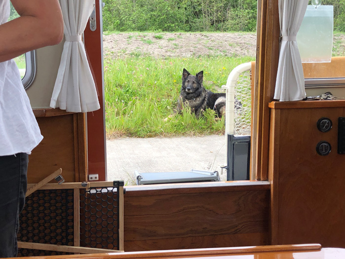 Hund an Bord03.06.2019 Wann geht's denn jetzt endlich mal los? Endlich morgendliche Hunderunde Susanne sammelt Stöcker für die Badestelle Seepferdchen war gestern - heute kommt der Freischwimmer Video, 12 MB Ein letzter Blick zurück zum Anleger. Ohne Christian an Bord, wären wir wohl noch ein oder zwei Tage geblieben. Aber wir wollen ihm ja noch was von Friesland zeigen. von Suyderoogh nach Kollum 19 KM - Fahrtzeit: 2 Std. 20 Min. 1 bewegliche Brücke 1 Schleuse Wetter: nur noch 18 bis 20 Grad, morgens und abends sonnig, tagsüber bedeckt, Wind 4 Bft 9,80 € Liegegeld in Kollum ![]() ![]() rechts die Schleuse zur Nordsee Auf dem Lauwersmeer. Wasser und sonst gar nix. Entsprechend aufmerksam ist die Mannschaft Man sollte im Lauwersmeer immer innerhalb der Betonnung fahren. Links von der Tonne (also in Seemitte) hat es nur noch 60 cm Wassertiefe. Auf der Sylster Rijd - Zufahrt nach Kollum Eigrentlich gibt es in Spielfilmen ja keine Szenen auf der Toilette. In diesem Bilderbuch schon. Die Sannesonne muss auf's Klo (Schmutzwasser abpumpen im Hafen Kollum). Unser Liegeplatz am Stadtrand Der Weg in den Ort ist ein guter Hundeweg Kollum ist ein netter, kleiner Ort mit allem, was Menschen brauchen. Div. Restaurants (keines getestet), 3 Supermärkte, kleine Geschäfte usw. Für die Hunde ist ausreichend Grün vorhanden. |