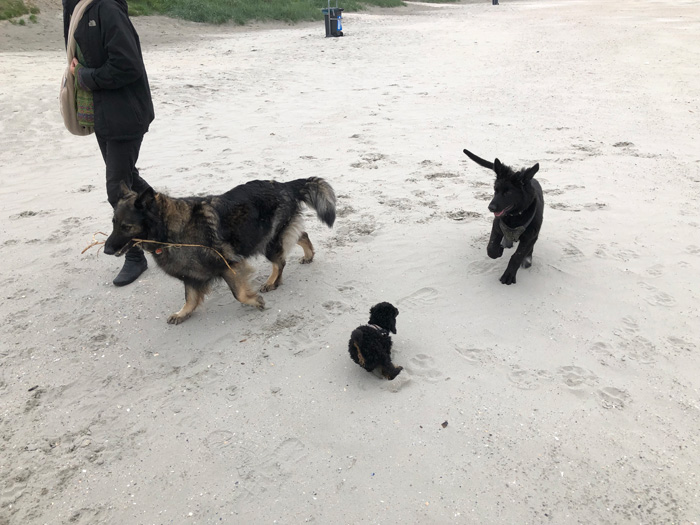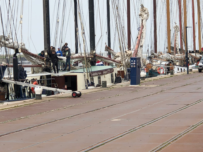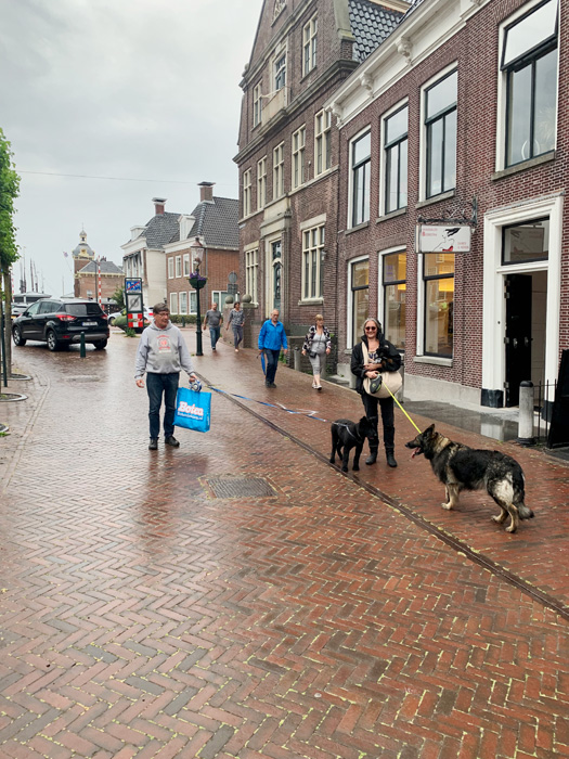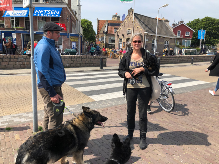 Hund an Bord07.06.2019 Das Service-Personal wird am Morgen genau beobachtet! Hafentag in Harlingen mit Ausflug nach Terschelling. Wetter: leicht durchwachsen. 18-20 Grad, überwiegend bewölkt, Nachmittags aufklarend, Abend leichter Regen. Windig, Böen bis 7 Bft. Nach dem Frühstück zum Strand. Im Zuckersand werden alle Hunde albern. Derh Hafen ist voll mit Großseglern. Freitags = Bettenwechsel an Bord. ![]() Mit der Tiger nach Terschelling. Fahrtzeit des Schnellbotes: 45 Min. Die normale Fähre braucht 2 Stunden. Terschelling - Zugang zum Ort. Der Sportboothaven auf Terschelling. Zurück zum Fährhafen. Irgendwie war uns nicht so nach fotografieren. Ich weiß nicht, warum. Terschelling ist eine wunderschöne Insel. Schöne Bilder von Terschelling findet Ihr am 29.04.2015. zurück in Harlingen. Für einen neuen Fassadenanstrich hat es wohl nicht gereicht ... ...für ein Gemälde schon. Abendbrot in einen Straßenrestaurant mit Tischen draußen (unterm Schirm). Es wird (speziell bei Regen) nicht leichter, ein Restaurant zu finden, wo (jetzt 3) Hunde willkommen sind. |