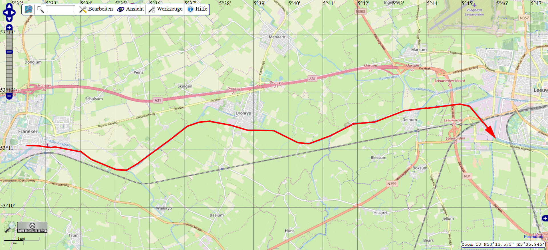 Wir gehen zum Franekers Bos (Losloopgebied) Hier klicken für eine Wegbeschreibung in Google Maps Zuerst durch den Stadtpark Im Franekers Bos von Franeker nach Rengerspolle