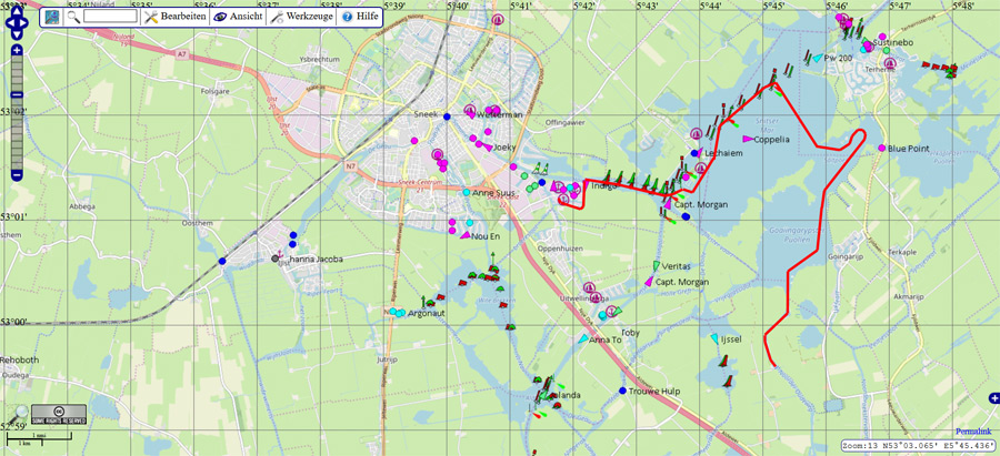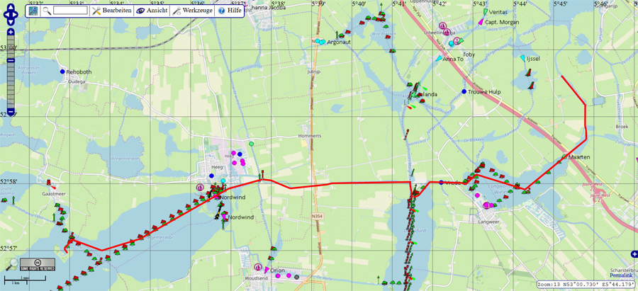 | Hund an Bord05.09.2012 Von Langehoekspolle zum Noarder Alde Wei Abfahrt auf Langehoekspolle: 11:55 Uhr Fahrzeit: 2 Std. 20 Min. Fahrtstrecke: 18,9 KM Durchschnittsgeschwindigkeit: 8,2 km/h 2 bewegliche Brücken, kein Brückengeld. Die Brücke am Jaansleat (3 m) und die Brücke am Alde Wei (2,80 m) haben wir mit gelegtem Mast und Windschutz ohne Wartezeit durchfahren. Ankunft am Noarder Alde Wei: 14:15 Uhr Wetter: trocken, bewölkt, 16 - 19 Grad Wind: 2 - 4 Bft Route in Karte: ![]() Noarder Alde Wei mit Hund: Keine "Runde" zu laufen, aber am Kanal "auf und ab" kann man gut laufen. Noarder Alde Wei für Menschen: Ruhiges liegen, Joure ist (wenn man gut zu Fuß ist) erreichbar (ca. 2,5 KM). Auf der anderen Kanalseite (eine kleine Fähre für Fußgänger und Fahrradfahrer fährt dort hin) ist ein Restaurant (nicht von uns getestet). Liegeplatz Noarder Alde Wei: ![]() ![]() ![]() ![]() ![]() ![]() Vom Noarder Alde Wei zum Heimathafen in Sneek Abfahrt am Noarder Alde Wei: 15:55 Uhr Fahrzeit: 1 Std. 30 Min. Fahrtstrecke: 12,4 KM Durchschnittsgeschwindigkeit: 8,5 km/h keine Brücken Ankunft am Heimathafen in Sneek: 17:25 Uhr Wetter: trocken, bewölkt, 16 - 18 Grad Wind: 3 - 5 Bft Route in Karte: ![]() Sneek, am Waterpoort: ![]() ![]() ![]() ![]() ![]() Sneek mit Hunden: siehe 06.09.2012 Sneek für Menschen: Eine sehr schöne Stadt. Hübsche Häuser, kleine Innenstadtgrachten, unzählige kleine Geschäfte und Restaurants, mehrere Supermärkte. Zum "Proviant-Bunkern" kann man gut am Waterpoort festmachen. Ein Supermarkt, ein Bäcker und Aldi sind nur ca. 200 m entfernt (Boschplein). |