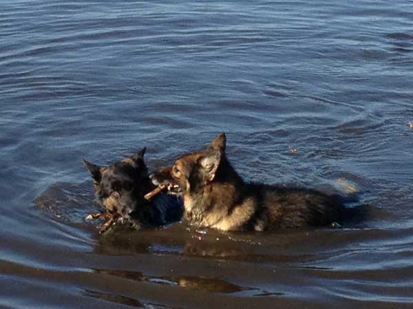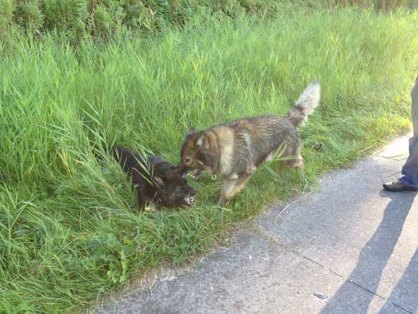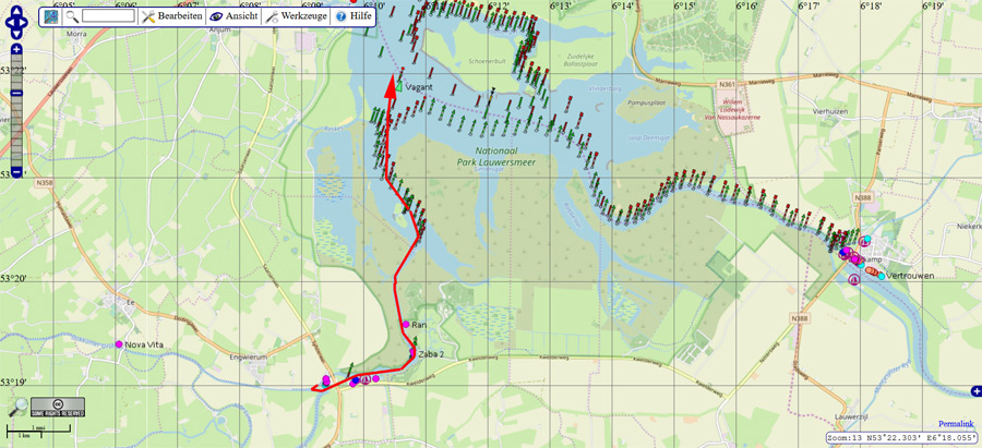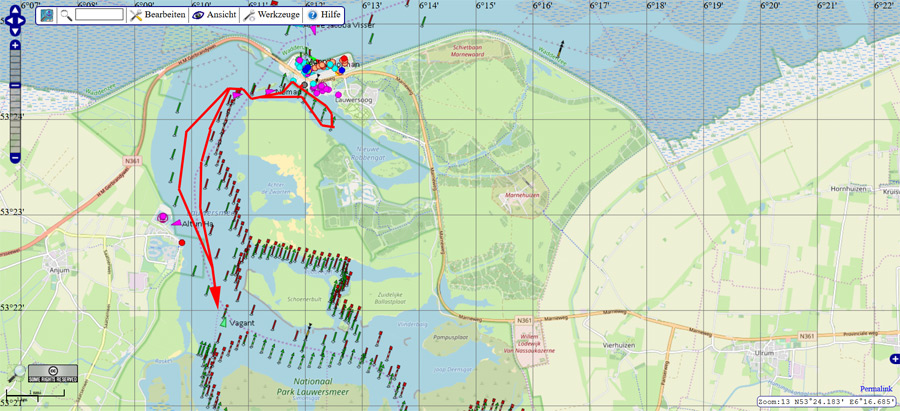 | Hund an Bord09.09.2012 Von Dokkumer Nieuwe Zijlen nach Lauwersoog und zurück Abfahrt an Dokkumer Nieuwe Zijlen: 11:40 Uhr Fahrzeit: 3 Std. 25 Min. Fahrtstrecke: 28,6 KM Durchschnittsgeschwindigkeit: 8,1 km/h 1 Schleuse mit 1 bewegliche Brücken, kein Schleusen- oder Brückengeld. Ankunft an Dokkumer Nieuwe Zijlen: 15:05 Uhr Wetter: trocken, sonnig bis leicht bewölkt, 18 - 23 Grad Wind: 2 - 3 Bft Route in Karte: ![]() ![]() Lauwersmeer / Lauwersoog: Nettes Fahrwasser, in Lauwersoog Schleuse zur Nordsee. Eigentlich wollten wir in Lauwersoog an Land um an der Nordsee spazieren zu gehen. Leider waren beide Sportboothäfen zu voll. Freie Liegeplätze gibt es in Lauwersoog nicht. Das Lauwersmeer mit Umland ist Naturschutzgebiet. An einigen der freien Liegeplätze herrscht absolutes Hundeverbot, an den anderen zumindest strikter Leinenzwang. Update 2019: Am freien Liegeplatz am Suyderoogh (südlich von Wendepunkt bei 6° 12,5') ist ein großes und wunderbares Hunde-Auslaufgebiet (siehe Tour Frühjahr 2018) ![]() ![]() Die Dokkumer Nieuwe Zijlen haben wir schon am 08.09.2012 etwas beschrieben. Hier folgen jetzt Bilder vom Losloopgebied dort. ![]() ![]() ![]() ![]() ![]() ![]() Und immer wieder hat man den Eindruck, dass es nur einen einzigen Stock auf der Welt gibt: ![]() ![]() ![]() ![]() Und auch an Land muss der kostbare Besitz verteidigt werden. ![]() ![]() ![]() ![]() ![]() |