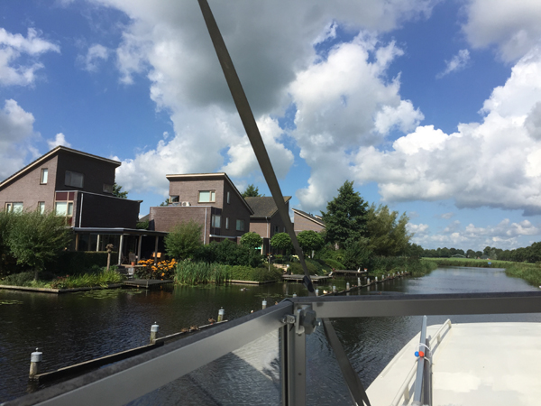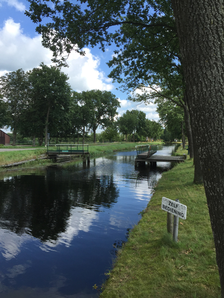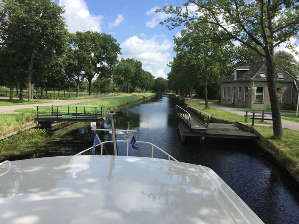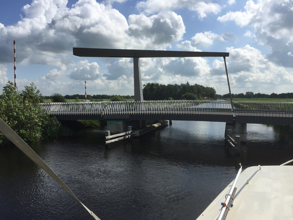 Abfahrt in Gorredijk um 12:15 Uhr Fahrt auf der Opsterlanske Kompanjonsfeart zum freien Liegeplatz hinter der Schleuse Wijnjeterp Verlaat Distanz: 9,1 KM / Fahrtzeit: 3 Std. 10 Min. 8 bewegliche Brücken, hiervon 4 in Selbstbedienung (Handbedienung) 3 Schleusen Wetter: aufgelockert bewölkt, meist sonnig, 22 Grad Route in Karte: ![]() An der letzten Brücke in Gorredijk. Blick zurück in die Stadt. Blick nach vorn auf die Brücke. ... und durch Vorort von Gorredijk. Eine handbetriebene Brücke. Hier heißt es: