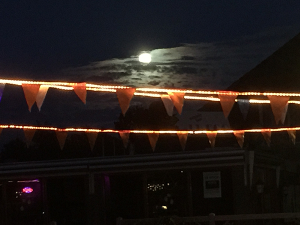 Ortsdurchfahrt Oosterwohlde Hebebrücke in Osterwohlde. Die Durchfahrt durch Oosterwohlde hat recht lange gedauert. Der junge Brückenwärter war mit allen drei Brücken etwas überfordert. Hier sieht man, dass er die Brücke öffnet, die Lichtzeichen aber von einfach Rot auf Doppelrot gesetzt hat. (Doppelrot heist: Brücke wird nicht bedient.) Am Liegeplatz in Appelscha. Der Liegeplatz in Appelscha (direkt an der Straße) ist nicht unbedingt traumhaft mit Hunden an Bord. Aber die Umgebung entschädigt das voll und ganz. Nur ca. 1 KM vom Liegeplatz entfernt fängt ein großes Waldgebiet an , der Nationalpark Drents-Friese Wold. Ein Freiluft-Theater mitten im Wald Abend sind wir dann noch essen gegangen..... .....und der Mond hat uns heim geleuchtet. |