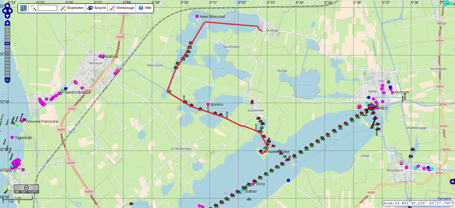 Hund an BordTour Herbst 201703.09.2017 Fahrt von Oudega nach Langehoekspolle (Insel auf Flüssen) ![]() 10,4 KM - 1 Std. 23 Min. sonnig bis leicht bewölkt, trocken, warm, kaum Wind Am Liegeplatz auf Langehoekspolle (einmal rund ums Boot fotografiert) Nein, das Boot liegt nicht bergauf..... .....der Mann hält das Handy schief! Pinkel- und Spaziergehpause!