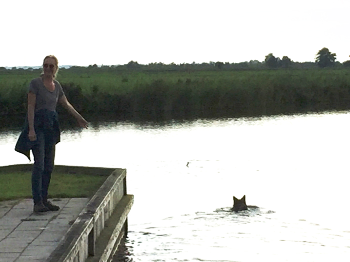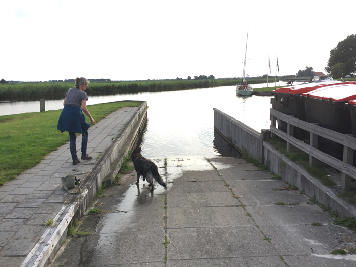 Hund an BordTour Herbst 201704.09.2017 Fahrt von Marchjepolle nach Gänzetippe (Insel am Ostrand des Tjeukemeer) ![]() 2,1 KM - 27 Min. (in absoluter Langsamfahrt) sonnig , trocken, warm, kaum Wind Hafenausfahrt Marchjepolle Gänzetippe voraus Am Liegeplatz auf Gänzetippe Auf Gänzetippe halten wir immer gern an, weil man hier eine wunderbare Hunderunde gehen kann. Die Insel ist (fast immer) leer - die Hunde können ohne Leine laufen. Zum Übernachten ist es uns aber zu laut, denn östlich der Insel läuft die Autobahn. . Fahrt von Gänzetippe zur Driewegsluis ![]() 15,5 KM - 2 Std. 5 Min. sonnig bis leicht bewölkt, trocken, warm, kaum Wind 3 bewegliche Brücken, 2,00 Euro Brückengeld an der Pier-Christianbrug in Echtenerbrug 11,00 Euro Liegegeld an der Driewegsluis. Der Liegeplatz an der Driewegsluis. An der Driewegsluis kann man gut und lange mit den Hunden laufen. Blick auf die Driewegsluis. Die Schleusenkammer. Die historische Driewegsluis wird nicht mehr benutzt. Der Schiffsverkehr läuft durch die moderne "Mr H.P. Linthorst Homansluis", direkt nebenan. Die Driewegsluis wird trotzdem instandgehalten. Zum einen als Baudenkmal, zum anderen als "Notlösung", wenn die moderne Schleuse mal kaputt ist oder gewartet wird.. Eine Boots-Slipanlage an der neuen Schleuse. Hier kann Lotte mal richtig schwimmen und ihr Spielzeug aus dem Wasser "retten". Zurück am Liegeplatz. Liegeplatz im Grünen, Bademöglichkeit an der Slipanlage, kilometerweit laufen: Die Driewegsluis können wir Hunden (und deren Servicepersonal) wärmstens empfehlen. |