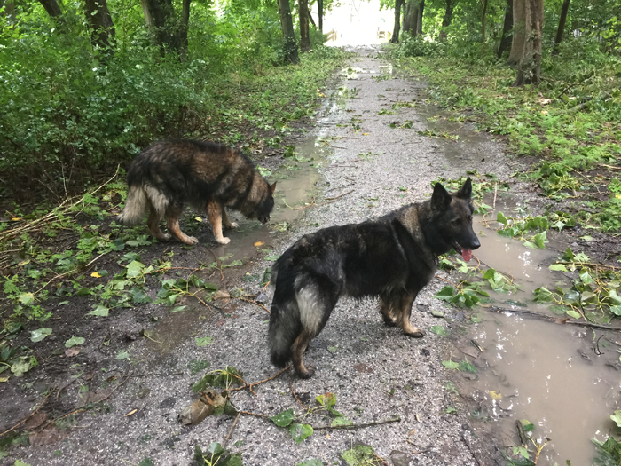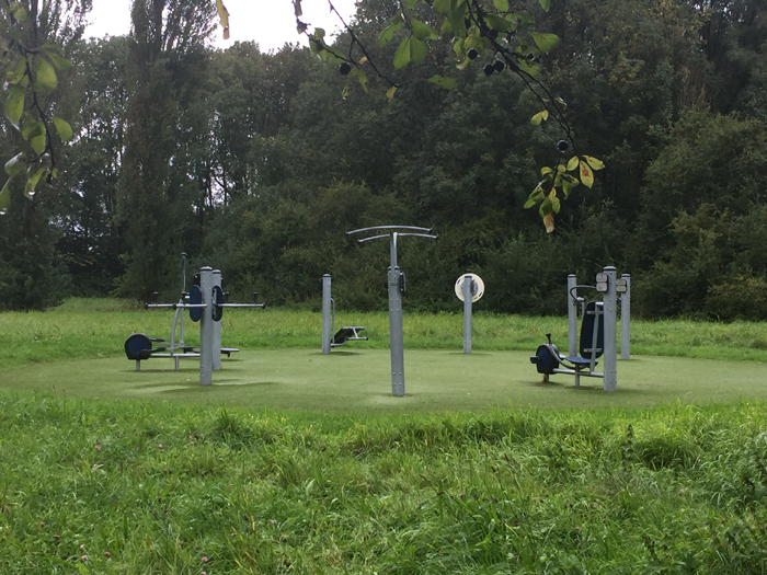 Alle Sitzpolster sollen abnehmbare und waschbare Bezüge bekommen, damit das Thema "abdecken mit Hundedecke" künftig entfällt. Am Nachmittag bin ich dann mit den Hunden (zum ersten Mal) in den Zwettebos (Park in Sneek) gefahren. An der Oude Zwette. Glückstreffer! Die Leinen können los gemacht werden. Auch der Zwettebos sieht insgesamt etwas "zerzaust" aus..... .....und an einigen Stellen hat er Opfer zu beklagen. Das städtische Fittness-Studio - "umsonst und draußen" |