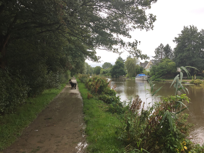 Hund an Bord14.09.2017Sneek grau, viel Regen, der Sturm hat nachgelassen - frischer Wind mit einzelnen Sturmböen. Wir waren in der Stadt und haben Polsterstoff ausgesucht.