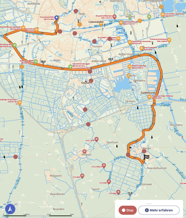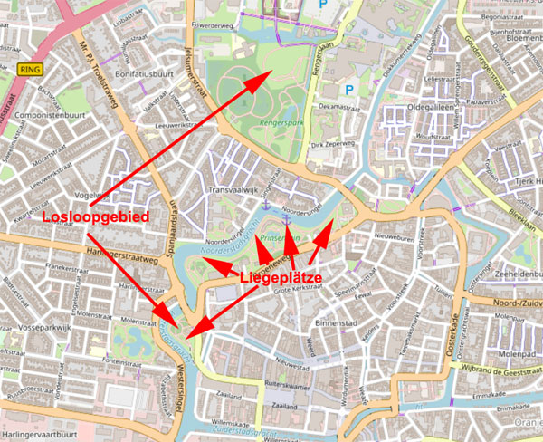 Brückenzeiten beachten! Zwischen 16:00 Uhr und 18:00 Uhr macht in Leeuwarden keine Brücke auf.